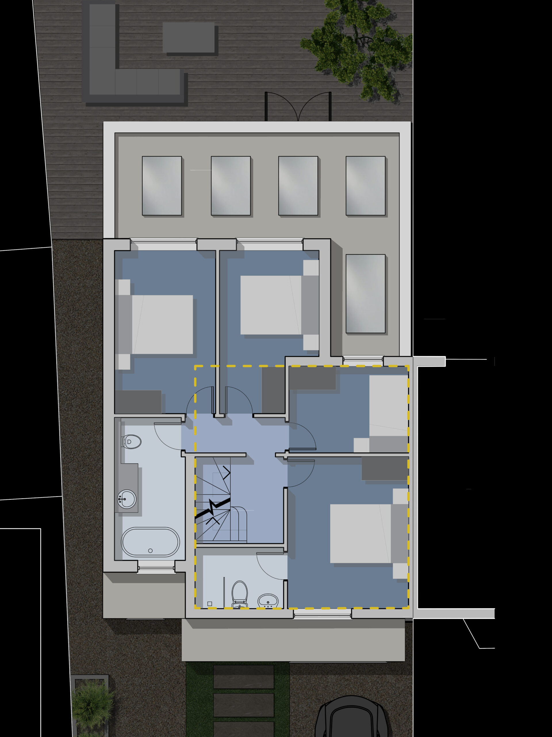 Chiswick Architecture maximised the potential of this open space by designing a two storey side and rear extension with extended loft conversion securing planning approval in December 2021.