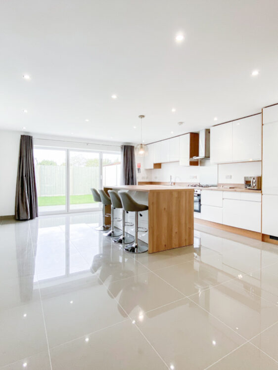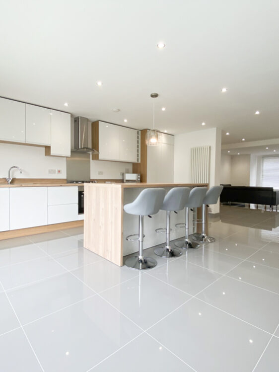 A new internal layout at ground, first floor and loft level takes advantage of the additional space to create stunning open plan living, kitchen and dining accommodation. The overall internal area has tripled in size from the original dwelling, transforming it from a 3 bed 1 bathroom to a 5 bed 3 bathroom property.